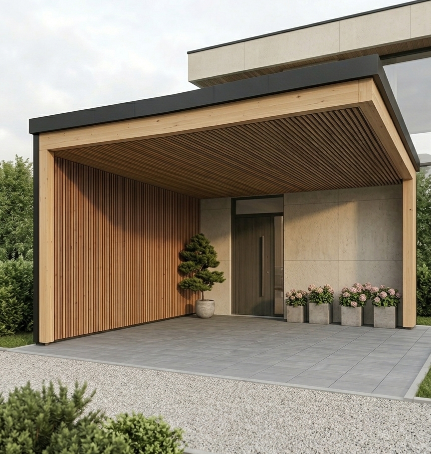 Nordic Outdoor Design Panel kombiniert modernes Design mit Funktionalität. Perfekt für überdachte Aussenbereiche, wo Ästhetik und Akustik wichtig sind.
