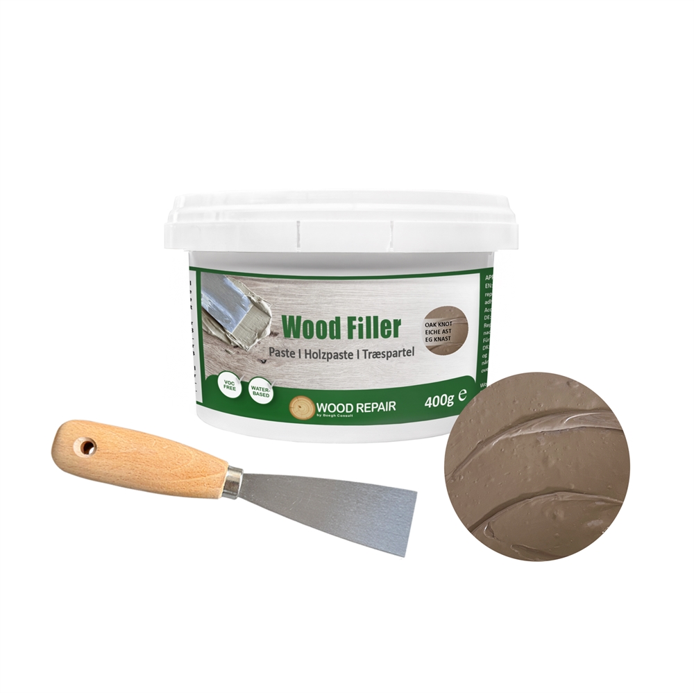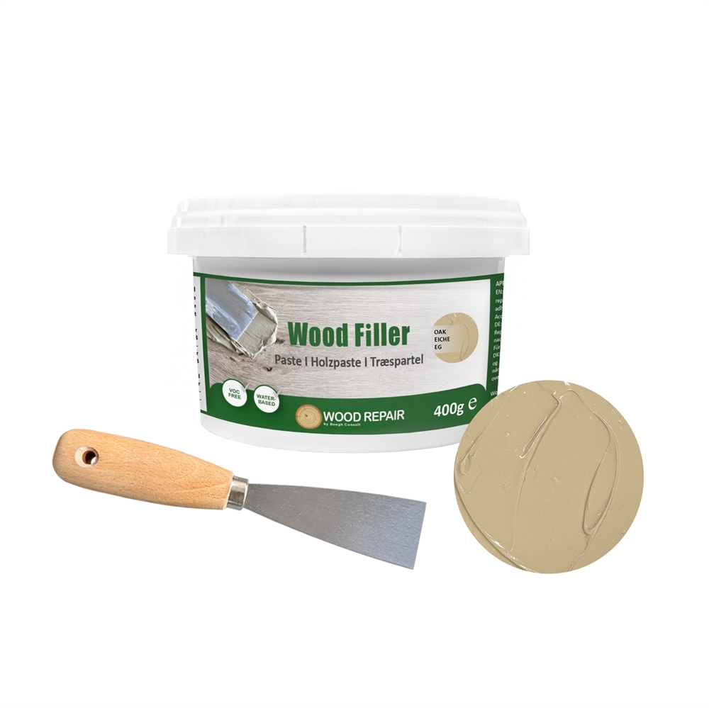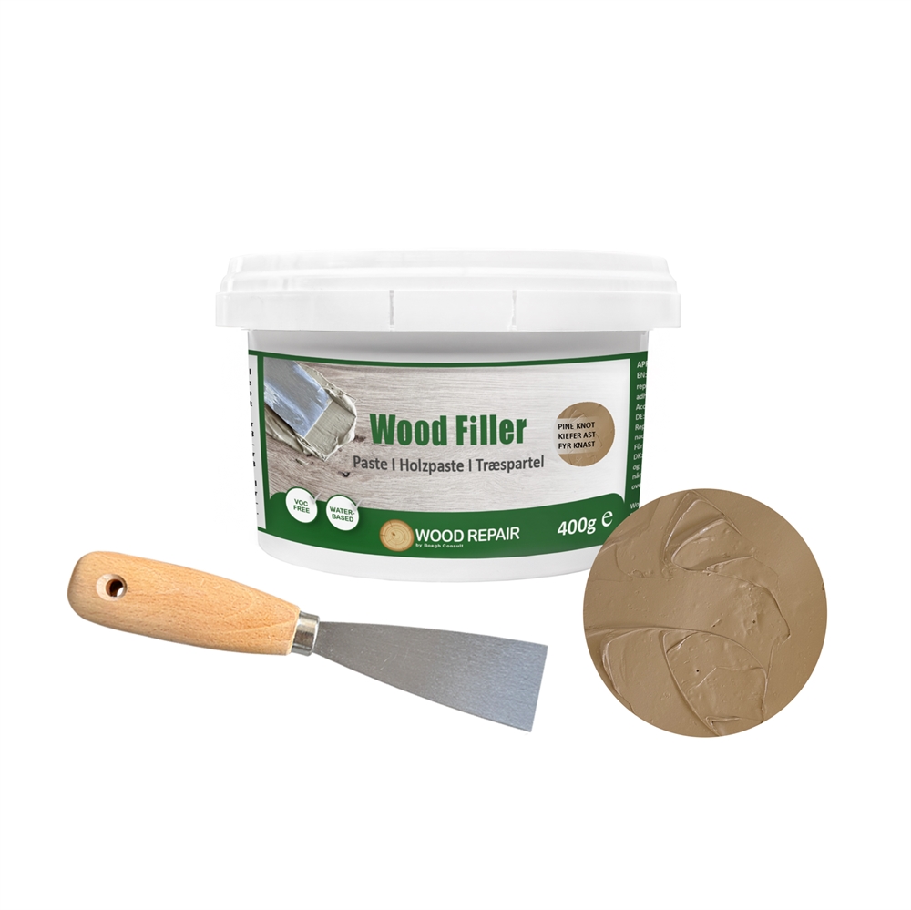 Wood Filler ist gebrauchsfertig und lässt sich einfach direkt aus dem Eimer auftragen. Für die Anwendung benötigen Sie ein Spachtelwerkzeug – und das ist selbstverständlich im Lieferumfang enthalten! Denken Sie auch daran, Schleifpapier und Oberflächenbehandlung bereitzuhalten, um das beste Ergebnis zu erzielen.
